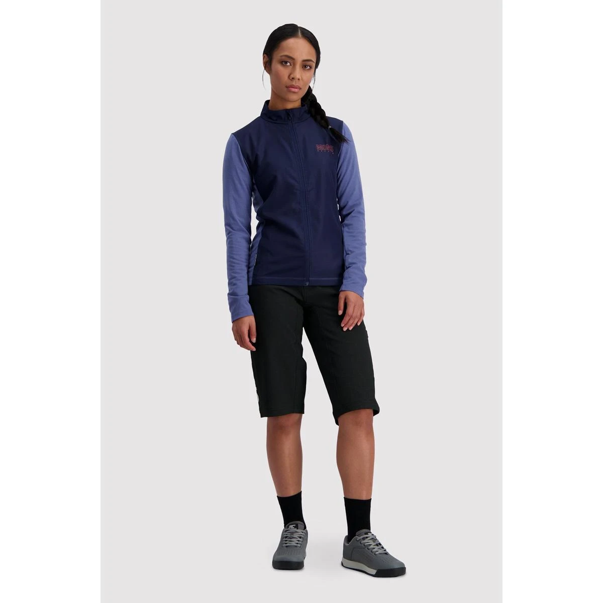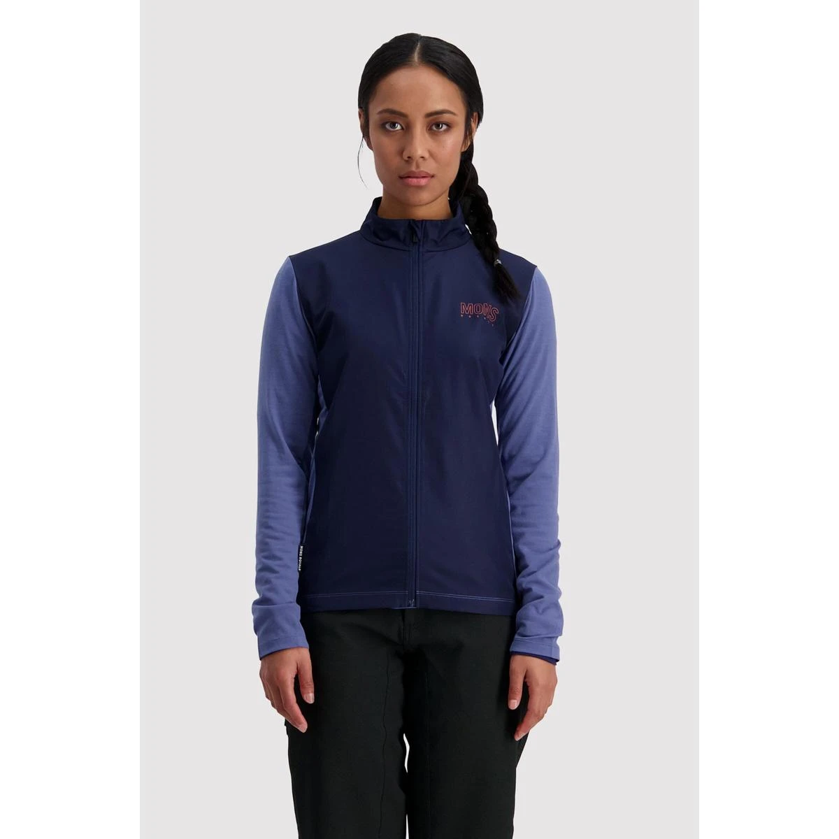 Using a ripstop polyester panel to protect the front of your body from wind chill and Merino Air-Con sleeves and back panel for breathability and temperature regulation.